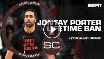 On SportsCenter, Adrian Wojnarowski details the breaking news of Toronto Raptors' Jontay Porter receiving a lifetime ban for gambling violations and New Orleans Pelicans star Zion Williamson out for Friday's Play-In game vs. the Kings.