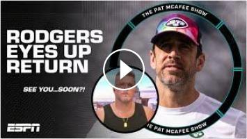 On The Pat McAfee Show, Aaron Rodgers joins the progrum to talk about his recovery and jokes about how quickly he intends to return for the Jets.