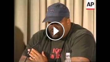 "As you all know this has been very difficult, the last couple of days, Cj and I, and I am here to show my complete support for my husband. Aside for him being and athlete and me being an athlete he is my husband and I want to show my support for him. I have total and complete respect and believe that the legal system will do what's needed to do to clear his name. I hope that all of you will respect the fact that I am competing still here in the Sydney Games. I have four more events to do so with saying that, if we cannot get any more phone calls to our hotel, we'd really really appreciate that, thank you."