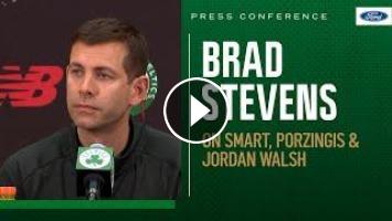 In a press conference following the 2023 NBA Draft, Brad Stevens talks about the team's draft night strategy that landed them Jordan Walsh, the difficult decision to trade Marcus Smart and what Kristaps Porzingis can bring to the team