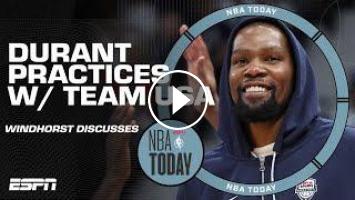 NBA Today’s Cassidy Hubbarth, Ramona Shelburne, Tim Bontemps, Kendrick Perkins and Brian Windhorst discuss Kevin Durant practicing for the first time with Team USA ahead of the 2024 Olympics in Paris.
