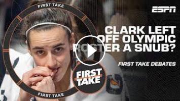 On First Take, Stephen A. Smith, Andraya Carter and Chris "Mad Dog" Russo join Molly Qerim to react to Caitlin Clark being left off the Olympic roster.