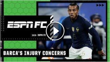 ESPN FC’s Dan Thomas, Luis Garcia and Ale Moreno discuss the injuries suffered by Jules Kounde, Ronald Araujo, Frenkie De Jong and Memphis Depay during the international break.