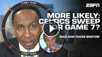 On First Take, Stephen A. Smith, CJ McCollum and Chris "Mad Dog" Russo debate whether Kyrie Irving, Luka Doncic and the Dallas Mavericks can avoid falling 3-0 to the Boston Celtics at home in Game 3 of the 2024 NBA Finals.