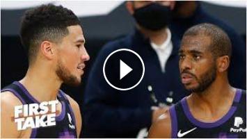 Stephen A. Smith, Max Kellerman and Monica McNutt whether the Los Angeles Lakers should be more worried about the Devin Booker and Chris Paul when L.A. faces the Phoenix Suns.