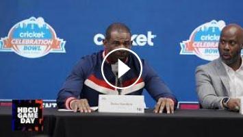 Deion Sanders addresses the media after the overtime loss to North Carolina Central in the Celebration Bowl.