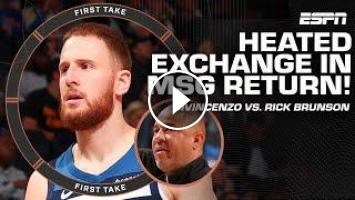 On First Take, Stephen A. Smith and Shannon Sharpe react to Donte DiVincenzo and Jalen Brunson’s dad, Rick exchanging words after the game in his return to Madison Square Garden since being traded from the New York Knicks to the Minnesota Timberwolves.