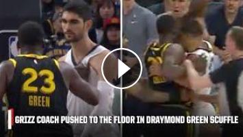 Watch as Draymond Green and Desmond Bane get into it and during the scuffle Draymond accidentally knocks over Grizzlies head coach Taylor Jenkins. This occurred after tensions rose with an on-court exchange between Draymond and Santi Aldama as the Memphis Grizzlies take on the Golden State Warriors.