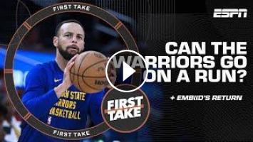 On First Take, Stephen A. Smith, Chris "Mad Dog" Russo and Chiney Ogwumike join Christine Williamson to debate if there is still time for the Golden State Warriors to go on a run. Then, the panel react to Joel Embiid's return from injury.