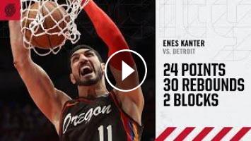 Enes Kanter set a Trail Blazers franchise record with 30 rebounds on Saturday night, breaking Sidney Wicks' record of 27 boards in 1975. He also broke the team record for offensive rebounds in a game with 12.