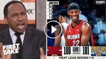 FIRST TAKE | "Jimmy Butler is an unstoppable MONSTER!" - Stephen A. on Heat beat Knicks 108-101