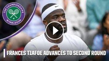 See highlights as Frances Tiafoe advances to the second round at the 2023 Wimbledon Championships with a couple of incredible shots in straight-sets victory over Yibing Wu.