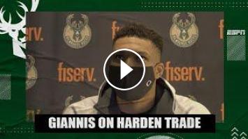 Giannis Antetokounmpo speaks to the media after Milwaukee Bucks vs. Detroit Pistons. The reigning league MVP (5:55) reacts to the news that the Brooklyn Nets acquired James Harden from the Houston Rockets in a trade.