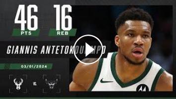 Watch highlights of Giannis Antetokounmpo as he records a double-double with 46 PTS, 16 REB & 6 AST in the Milwaukee Bucks’ road win over the Chicago Bulls.