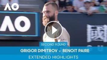 Extended highlights as Grigor Dimitrov takes on Benoit Paire in the second round of the Australian Open 2022.