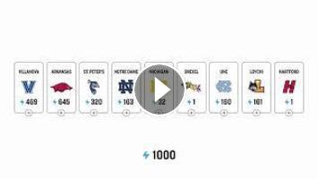 Play NCAA March Madness Men's Tournament Run, for a new way to compete in the NCAA tournament. After Selection Sunday, draft a lineup of teams while staying under budget, then trade them after every game as their values change with every win or loss — the better the team they beat, the more points they get. Compete with friends to see who is the best Tournament Run manager!