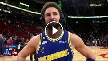 Klay Thompson talks about his 41-point shooting 10-13 3-pointers as the Golden State Warriors took down the Houston Rockets, 127-120.