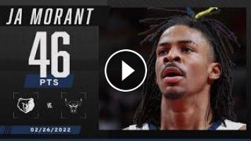 Ja Morant records 46 PTS on 15-28 FG to go with 4 REB & 3 AST in the Memphis Grizzlies’ 116-110 win against the Chicago Bulls. That’s the most points any Grizzlies player has ever scored in a regular season game.
