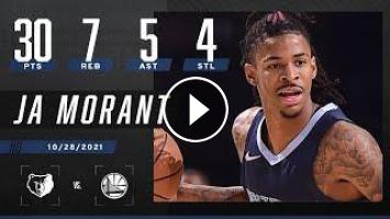 Ja Morant records 30 PTS, 7 REB, 5 AST & 4 STL in the Memphis Grizzlies’ 104-101 overtime win on the road against the Golden State Warriors.