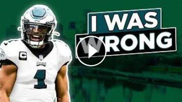 I was dead wrong about the Philadelphia Eagles quarterback Jalen Hurts, and I’m here today to fess up. Through his first two seasons, I just didn’t see how he could turn into a viable NFL QB, and then 2022 happened. Hurts almost won MVP, he’s gotten the Eagles to the precipice of the Super Bowl, and ultimately, I was wrong. However, I still have some problems that still pop on his film, so today we dive into first where and why I was wrong, and then get to those trouble areas. This week’s episode uses the all-22 coaches film to analyze the Philadelphia Eagles Quarterback Jalen Hurts.
