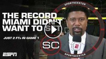Jalen Rose speaks with Neil Everett on SportsCenter about what he saw from the Miami Heat in their 104-93 loss to the Denver Nuggets in Game 1 of the 2023 NBA Finals. With Miami setting an NBA record for the fewest free throw attempts (2) in a playoff game, Rose says Jimmy Butler & the rest of the Heat need to play with force to get into the series.