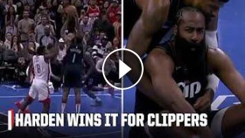 Watch as James Harden drills a dagger 3-pointer and gets fouled. He would go onto make the free throw and give the Los Angeles Clippers a 4-point lead over the Houston Rockets.