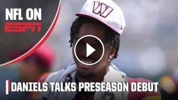Rookie quarterback Jayden Daniels speaks with reporters following his preseason debut with the Washington Commanders where he threw for 45 yards and ran in a touchdown. Head coach Dan Quinn also speaks about the team’s practices with the New York Jets ahead of the game.