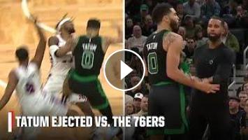 Jayson Tatum was assessed 2 technical fouls in the Boston Celtics' matchup with the Philadelphia 76ers and was ejected.