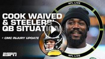 Dan Graziano and Dan Orlovsky join Laura Rutledge on NFL Live to discuss top news around the NFL to include the New York Jets waiving RB Dalvin Cook, Christian McCaffrey (leg) out for the San Francisco 49ers and the Pittsburgh Steelers sticking with QB Mason Rudolph starting over QB Kenny Pickett (ankle).