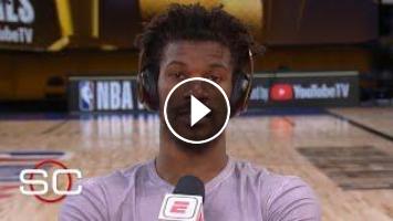 Jimmy Butler discusses the Miami Heat’s victory in Game 5 of the 2020 NBA Finals against the Los Angeles Lakers. Butler had a 35-point triple-double, but calls the victory a total team effort. (2:14) Butler adds that the Heat will win Game 6 and will do whatever needs to be done to do so.