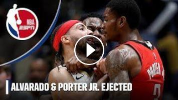 Jose Alvarado and Kevin Porter Jr. were both ejected late in the fourth quarter of the Pelicans’ win against the Rockets after Alvarado was fouled by Porter and the two were separated.