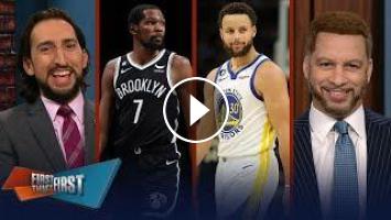 Kevin Durant leads Nets to big win vs. Warriors, Kyrie takes jab at Curry | NBA | FIRST THINGS FIRST