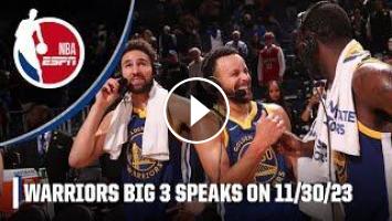 On 11/30/23, Klay Thompson, Stephen Curry and Draymond Green speak after the Golden State Warriors’ 120-114 win against the LA Clippers about their chemistry and longevity.