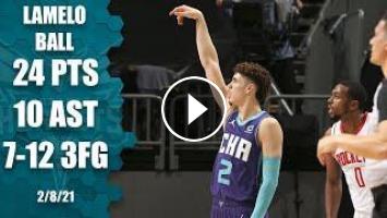 Watch the highlights as LaMelo Ball hits a career-high seven 3-pointers and hands out 10 assists in the Charlotte Hornets' big win vs. the Houston Rockets.