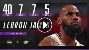 LeBron James records his 75th career 40-point game and 1st this season in the Los Angeles Lakers’ 129-120 road win against the Oklahoma City Thunder.