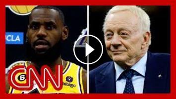 LeBron James asked reporters during a press conference why they questioned him about a Kyrie Irving tweet linked to an antisemitic film, but never questioned him on a picture that emerged of Dallas Cowboys owner Jerry Jones from 1957 seemingly showing Jones in a group blocking Black students from entering a desegregated school. #CNN #News