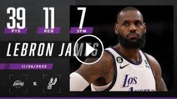 Check out these highlights from LeBron James' 39-point performance against the San Antonio Spurs. James shot 7-12 from 3. After this game, James has 37,371 career total points, 1,016 points behind the all-time leader Kareem Abdul-Jabbar.