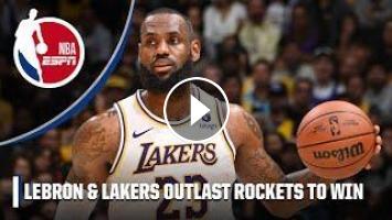 Austin Reaves hits the game-turning three that puts the Los Angeles Lakers in the lead over the Houston Rockets. Then in the finals moments Houston tries to send it to overtime, but with the help of a LeBron James free throw and a missed shot by Dillon Brooks, the Lakers go on to win 105-104.