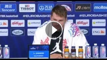 Luka Doncic speaks to the media following Slovenia's 90-87 loss to Poland in the EuroBasket quarterfinals.