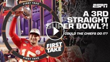 On First Take, Chris “Mad Dog” Russo, Kimberley Martin, Louis Riddick and Harry Douglas debate whether the Kansas City Chiefs can become the 1st team to win 3 straight Super Bowls and share their biggest issues with Mad Dog’s Top 10 QB list.