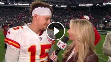 Patrick Mahomes fields questions from ESPN's Laura Rutledge following the Kansas City Chiefs' win over the Las Vegas Raiders, which gives the Chiefs a first round bye in the playoffs. Mahomes describes having the bye week as 'winning a playoff game.'