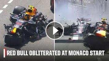 Watch as a huge crash unfolded on lap one of the Monaco Grand Prix bringing an immediate red flag to the race.