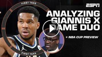 On First Take, Stephen A. Smith, Shannon Sharpe and Kendrick Perkins join Molly Qerim to make their predictions for the NBA Cup Championship between the Oklahoma City Thunder and the Milwaukee Bucks while analyzing Damian Lillard & Giannis Antetokounmpo duo.