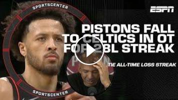 SportsCenter recaps top plays and moments as the Detroit Pistons succumbed to the Boston Celtics in overtime to tie the Philadelphia 76ers for the NBA's longest losing streak, despite being up by as many as 19 points.