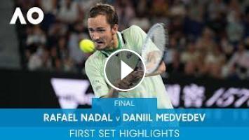 Watch highlights from first set of the Australian Open 2022 final as Rafael Nadal takes on Daniil Medvedev.