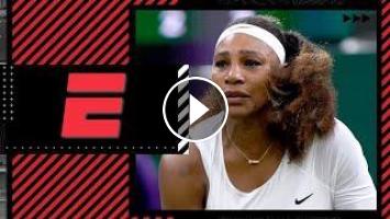 Serena Williams retired from her first-round match at Wimbledon on Tuesday against Aliaksandra Sasnovich with a left leg injury.