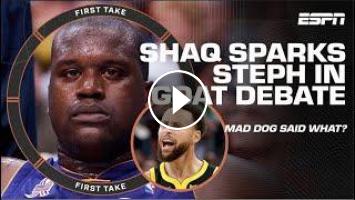 On First Take, Stephen A. Smith, Chris “Mad Dog” Russo and Jay Williams respond to Shaq’s comments about whether Steph Curry should be in the GOAT conversation.