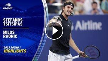Watch the highlights of Stefanos Tsitsipas vs. Milos Raonic in Round 1 of the 2023 US Open. These highlights are presented by Cadillac.