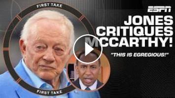 On First Take, Stephen A. Smith, Kimberley A. Martin and Dan Orlovsky react to Jerry Jones calling out Mike McCarthy for “bad plays.”