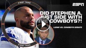 On First Take, Stephen A. Smith, Chris "Mad Dog" Russo, and Marcus Spears debate whether the Dallas Cowboys or Detroit Lions are a more dangerous team. Then, the panel discuss who they got Washington Commanders vs. Dallas Cowboys.